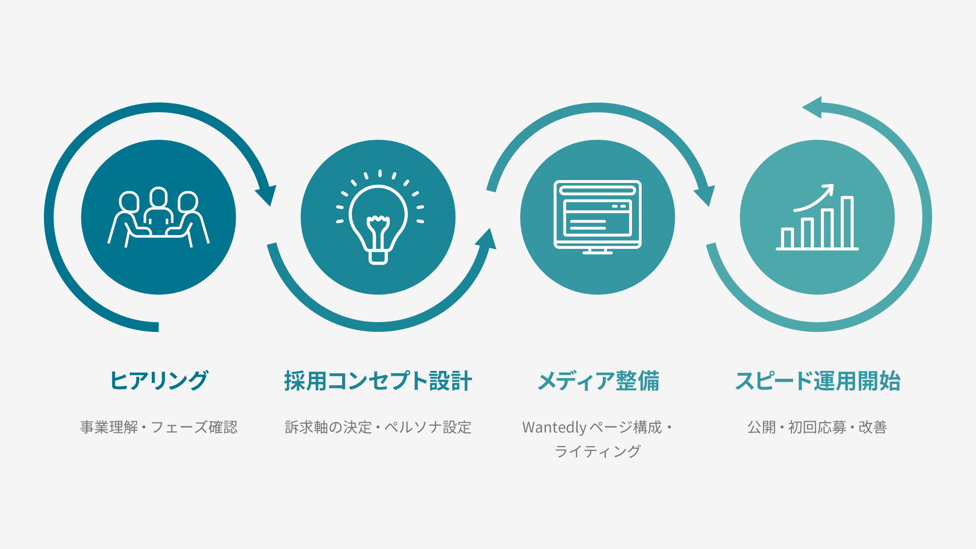 事業や求人要件が固まりきっていない場合でも、フェーズにあわせたご支援をいたします。